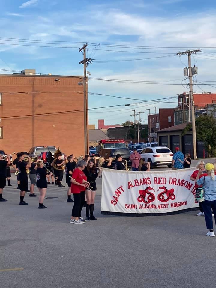 Principal Jaclyn Swayne and Mayor Scott James spoke at the dedication which had a turnout of five dozen alumni/community members and two dozen current SAHS students. It was a great day in Saint Albans and a great day to be a Red Dragon!