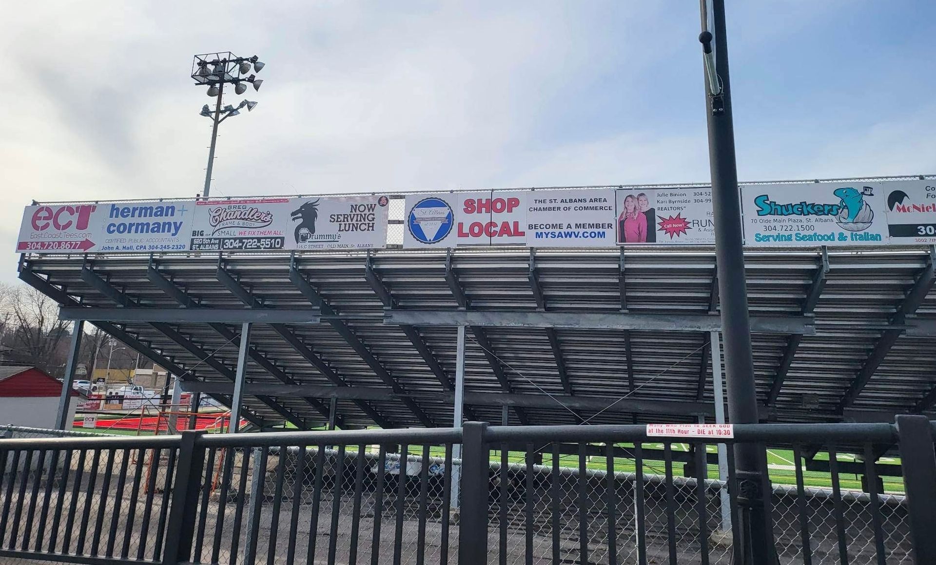 - Sponsors advertising banner at Saint Albans Little League Field